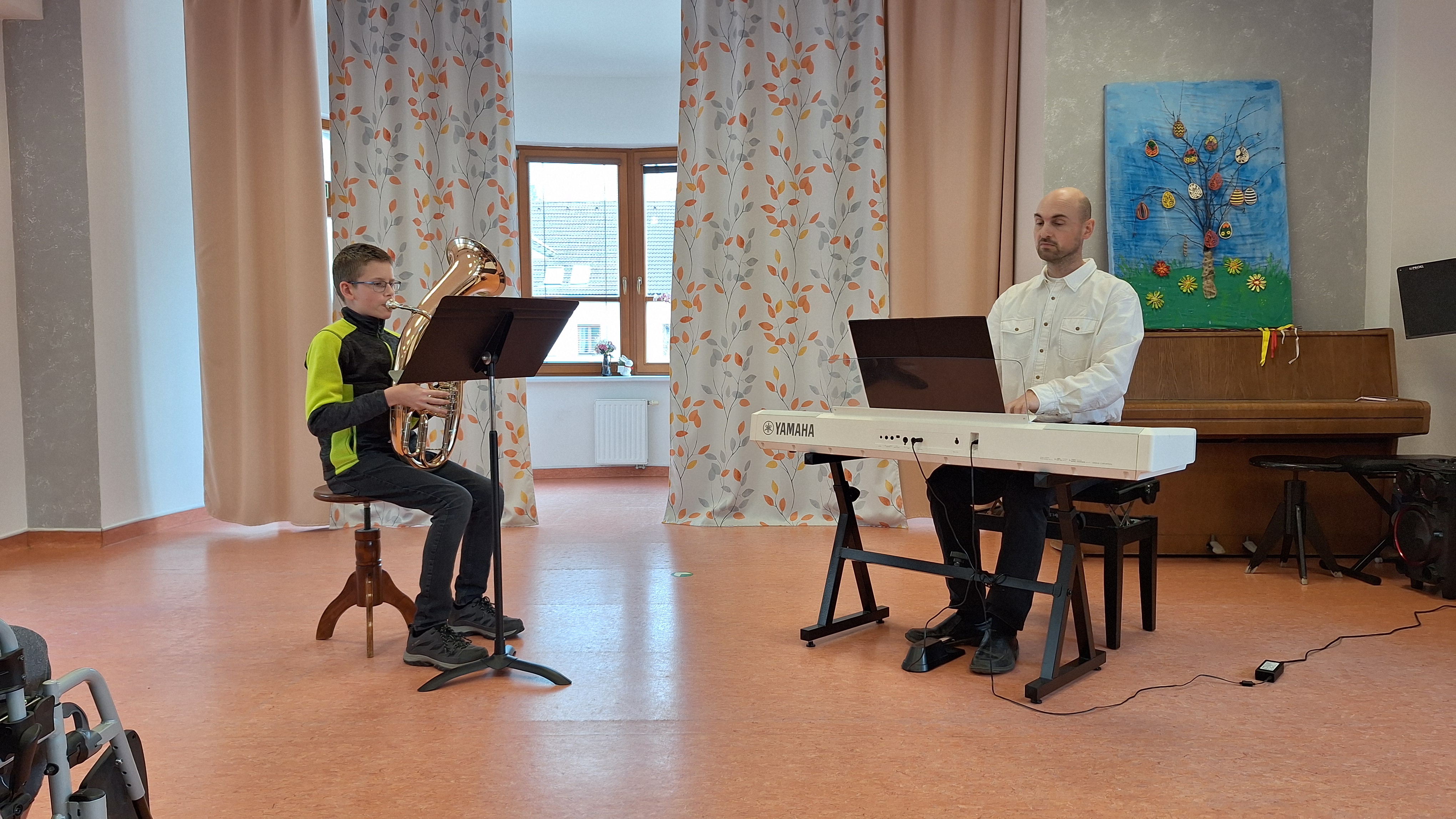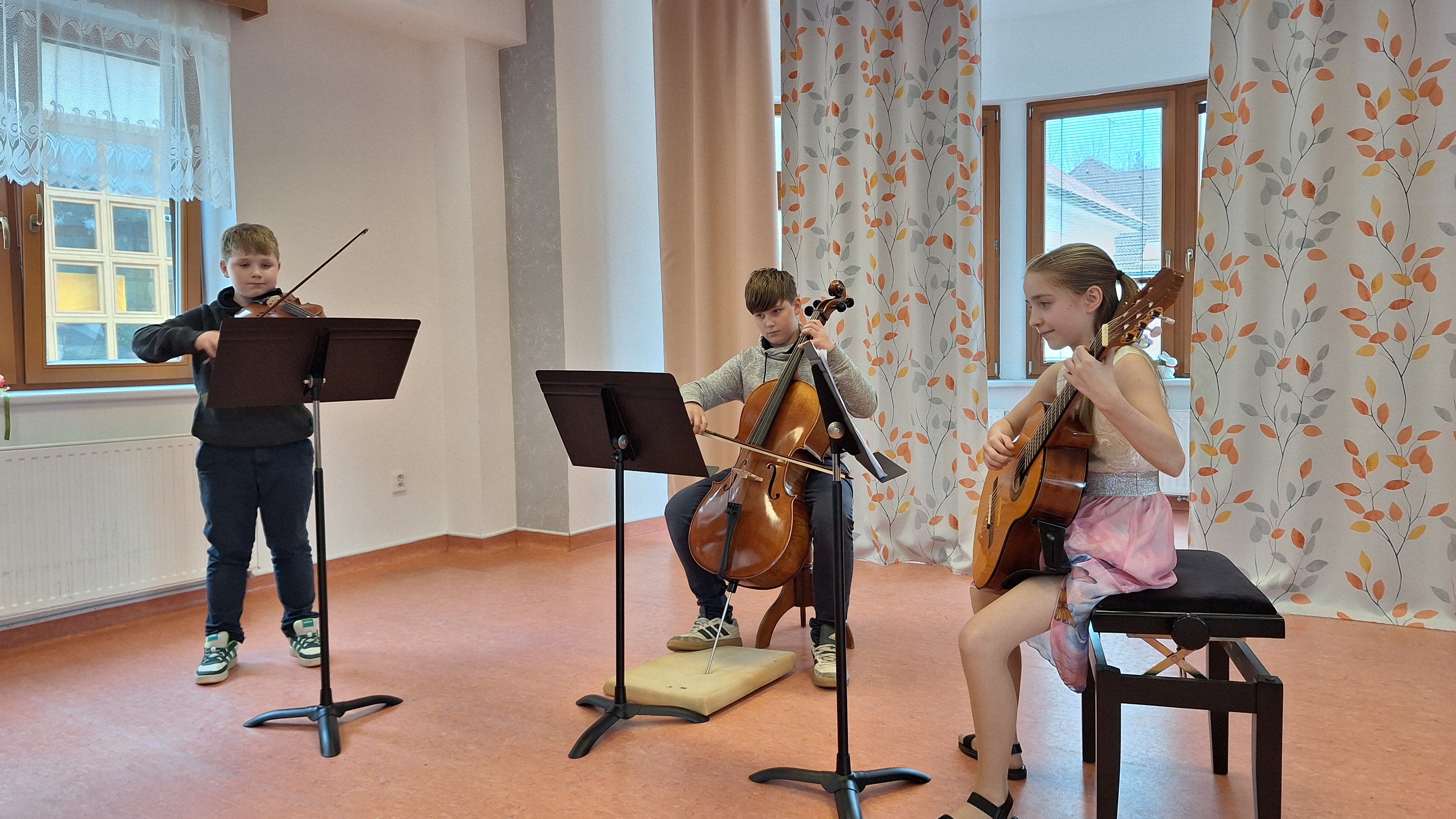 Zaměstnanci Domova i posluchači pro nás vytvořili opravdu příjemnou atmosféru. Vystoupení žáků hudebního oboru krásně orámoval výběr z připravovaného baletního představení Labutí jezero. Zahájil soubor nejmenších labutí a program uzavřelo sólo Odetty v podání Natali Horákové. Všechna čísla se dětem moc povedla a radost byla zcela jistě oboustranná. Někteří senioři si bez pobízení s chutí zazpívali lidové písně spolu s našimi zpěváčky a každý hudební i taneční výkon odměnili vřelým potleskem a úsměvy. Každé takové setkání více generací na jednom místě je velkým potěšením a zadostiučiněním. O tom se ostatně můžete přijít přesvědčit i Vy z řad veřejnosti na Koncert generací, který se bude konat ve čtvrtek 14. 5. 2026 v 19 hodin v koncertním sálu naší školy. (MgA. Klára Faltusová)