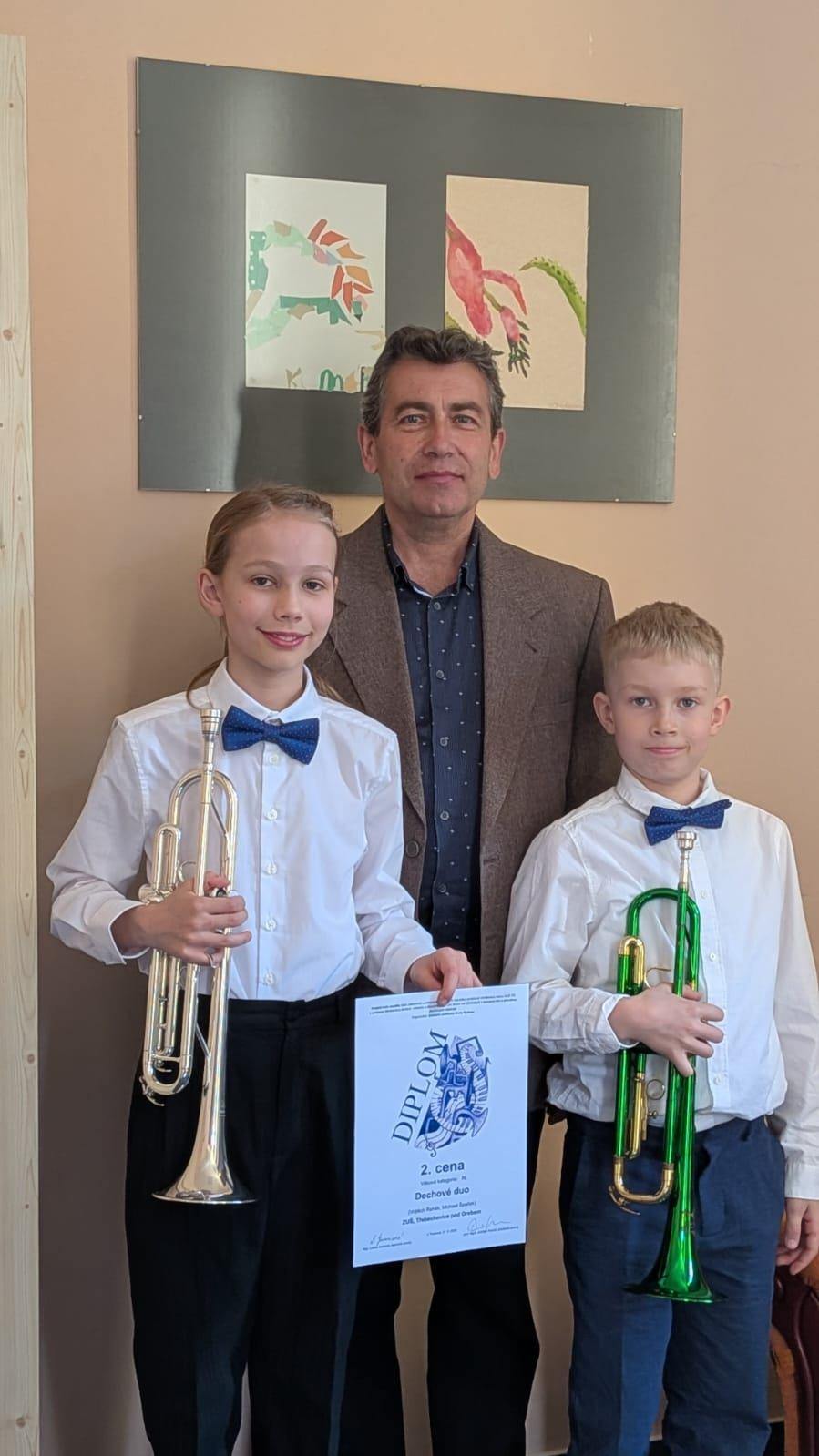 Soutěž ve hře na dechové nástroje žesťové se konala v ZUŠ Trutnov. Soutěže se zúčastnilo 19 souborů a naše duo ve složení Vojtěch Řehák (trubka) a Michael Špaček (trubka) obsadilo ve své kategorii 2. místo.