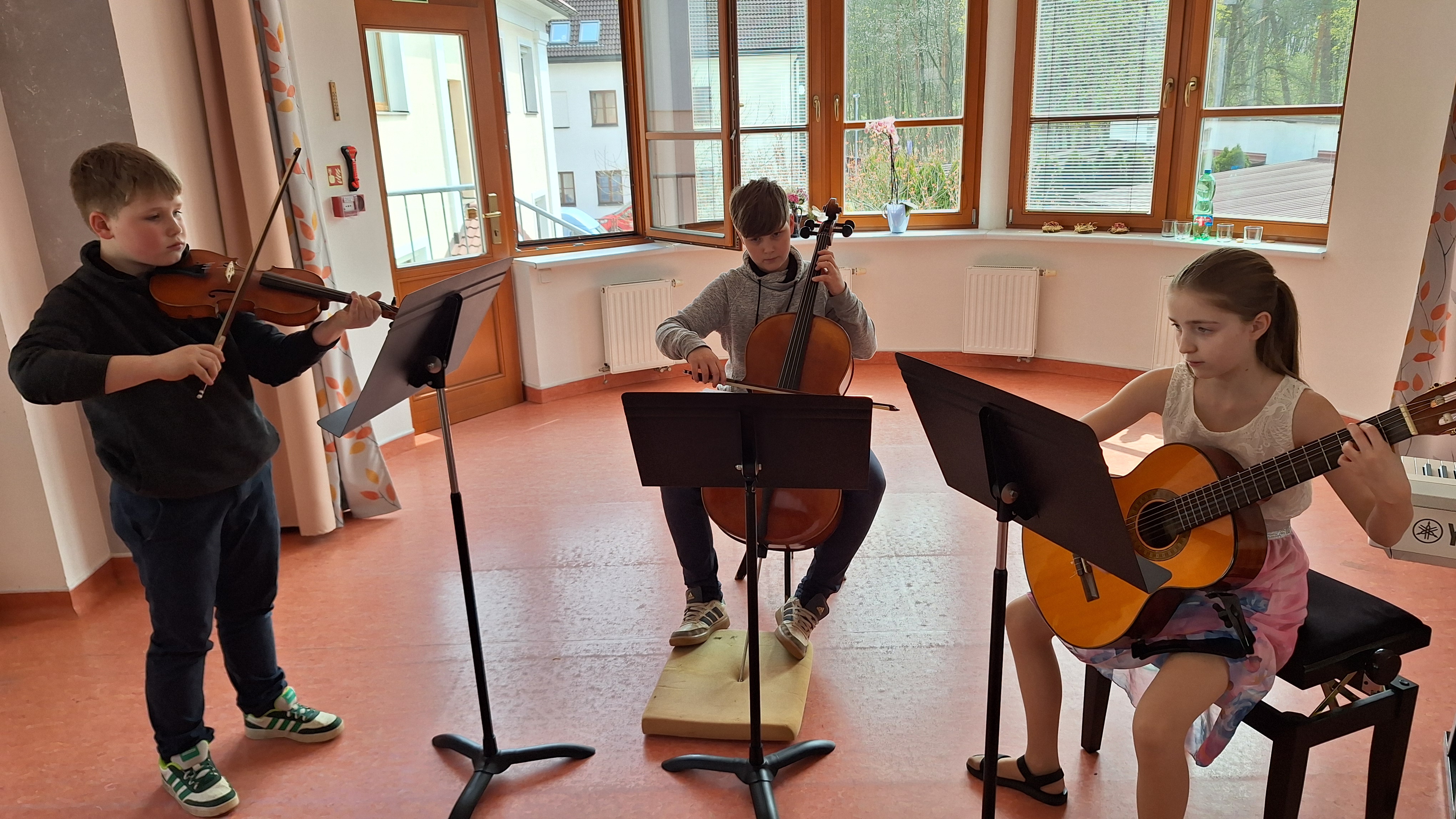 Zaměstnanci Domova i posluchači pro nás vytvořili opravdu příjemnou atmosféru. Vystoupení žáků hudebního oboru krásně orámoval výběr z připravovaného baletního představení Labutí jezero. Zahájil soubor nejmenších labutí a program uzavřelo sólo Odetty v podání Natali Horákové. Všechna čísla se dětem moc povedla a radost byla zcela jistě oboustranná. Někteří senioři si bez pobízení s chutí zazpívali lidové písně spolu s našimi zpěváčky a každý hudební i taneční výkon odměnili vřelým potleskem a úsměvy. Každé takové setkání více generací na jednom místě je velkým potěšením a zadostiučiněním. O tom se ostatně můžete přijít přesvědčit i Vy z řad veřejnosti na Koncert generací, který se bude konat ve čtvrtek 14. 5. 2026 v 19 hodin v koncertním sálu naší školy. (MgA. Klára Faltusová)